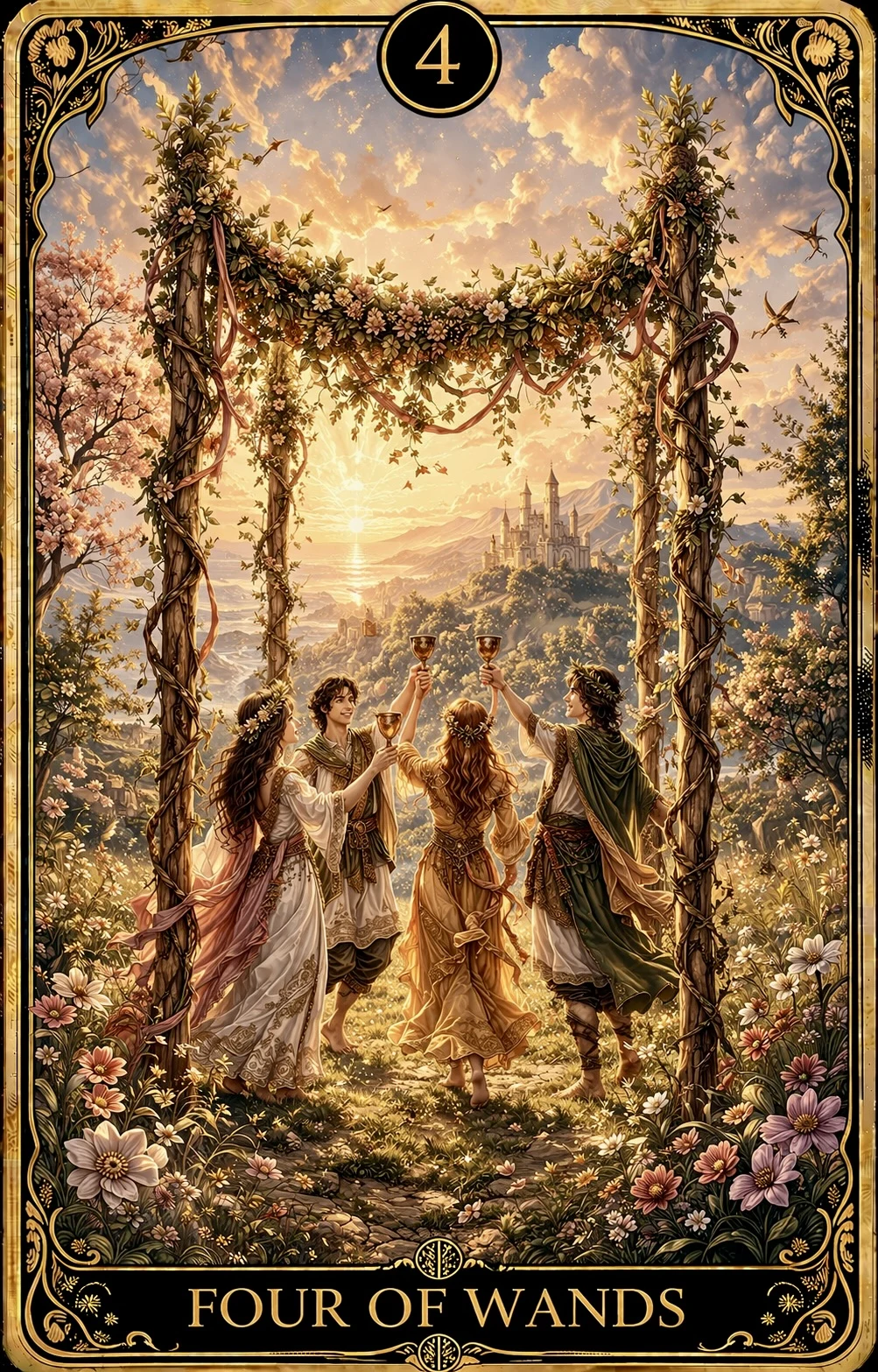 완드, 컵, 소드, 펜타클. 4개의 수트, 56장의 카드.